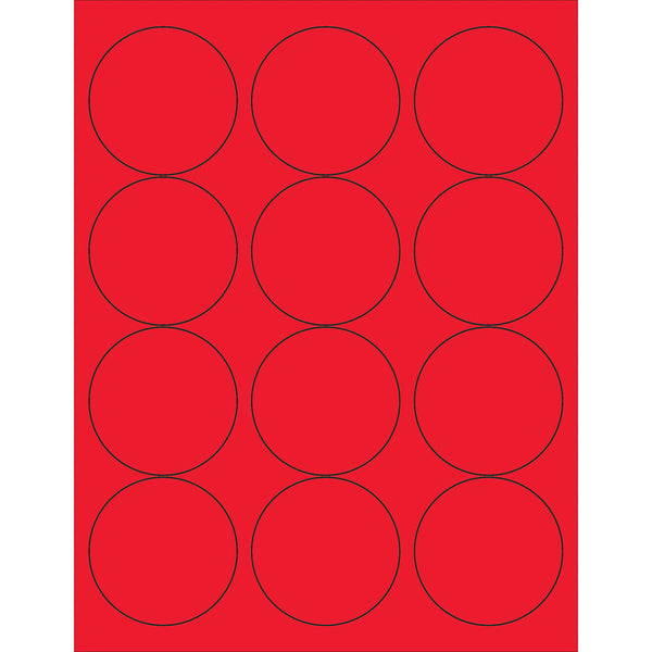 2 1/2" Fluorescent Red Circle Laser Labels 1200/Case