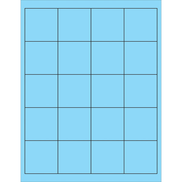 2" x 2" Fluorescent Pastel Blue Rectangle Laser Labels 2000/Case