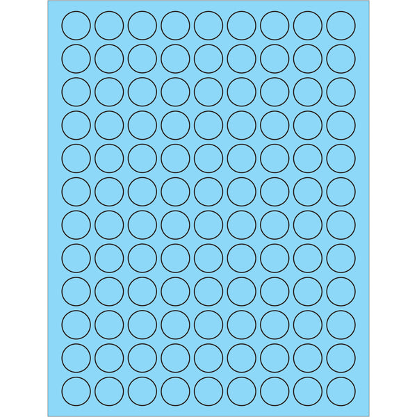 3/4" Fluorescent Pastel Blue Circle Laser Labels 10800/Case