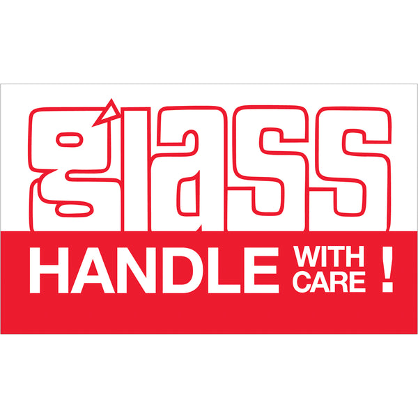 3 x 5" - "Glass - Handle With Care" Labels 500/Roll
