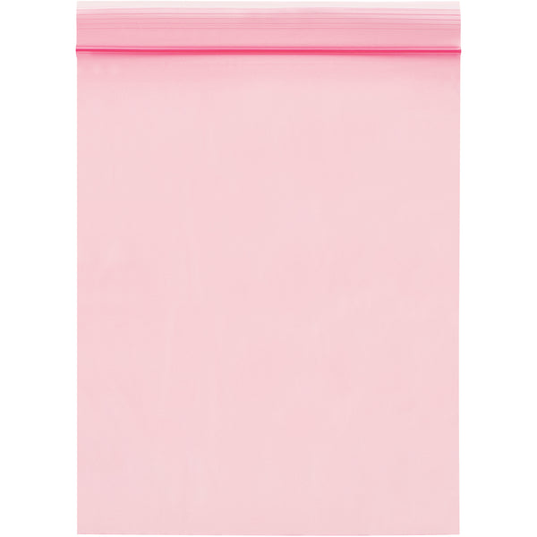 - Bags are manufactured from pink, anti-static polyethylene film. Zipper extends the width of the bag to secure contents.